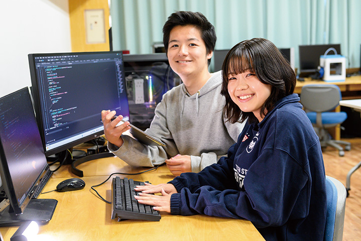 AIアプリで使用されるプログラミング言語Pythonを学ぶほか、AIを活用したPBL(課題解決型学習)の授業があります。AIを使いこなしていく学習が充実しているので、時代に求められるIT人材を目指すことができます。
