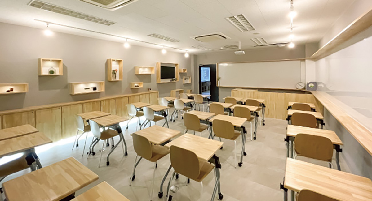 IT企業のオフィスをイメージした明るい教室。超ハイスペックパソコンがあり、AI学習にも使用可能です!