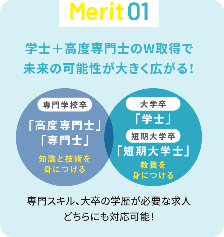 専門スキルに加え、学位(学士・短期大学士)を取得したい方に最適なプログラムです。