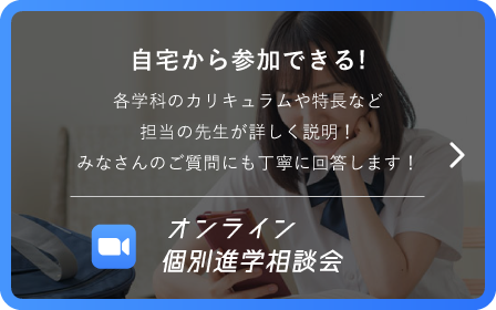 - ⑤オンライン個別進学相談会の開催中は皆さんの顔や声・個人情報は参加者全員に共有されることはありませんので、ご安心ください。
