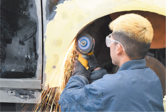 実際の製作作業が始まります。車体の改造、塗装、内装の仕上げなど、各工程を学生たちが分担して進めます。