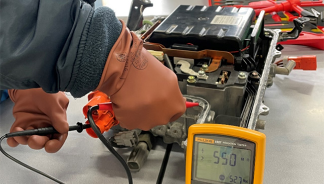 本科では定期的に各ディーラー整備士による技術講習を行います。電気・水素自動車、ハイブリッドシステム、自動運転などの現場で行われている最新技術や故障の仕組みを学ぶことができます。